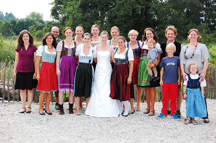 Das Wetter präsentierte sich von der schönsten Seite seit langem zum alljährlichen Volksfest-Aufgalopp, und immerhin 12 unserer Jugendspieler/innen fanden Zeit, sich beim festlichen Auszug vom Hauptplatz zum Volksfest-Gelände der MTV-Gruppe anzuschließen. Nach Wochen der trainingsarmen Urlaubszeit bedeutet dieses Event aber auch gleichzeitig immer das Ende der Ferien und den Auftakt der intensiven, direkten Saison-Vorbereitung. Die Jugendmannschaften werden wieder mit "vollen Batterien" und mit großem Elan in ihre Trainings einsteigen, und die Erwachsenen-Teams absolvieren am kommenden Wochenende ihr Trainingslager, erstmals seit langem allerdings in heimischer Gymnasiums-Halle und nicht in Hohenschwangau. Wir wünschen allen Teams alles Gute bei ihrer Vorbereitung sowie dem Saisonstart, der Ende September/Anfang Oktober ansteht. ![]() ![]() (Fotos: Penner) Dienstag, 03.09.13 Nächste MTV-Volleyballerin "unter der Haube": Alles Gute, Elke und Rupert!! ![]() Am vor-vergangenen Samstag gaben sich in der Niederscheyerer Kirche unser langjähriges Abteilungsmitglied und mittlerweile dienstältestes Mannschaftsmitglied der 1. Damenmannschaft, Elke (jetzt) Sieber und ihr Rupert das Ja-Wort. Zu den Gästen auf dem rauschenden Hochzeitsfest am Stockerhof zählten viele ehemalige und noch aktive MTV-Volleyballerinnen, die die Gelegenheit für ein ganz besonderes Mannschaftsfoto nutzten und bewiesen, dass sie nicht nur im Trikot eine tolle Figur machen.