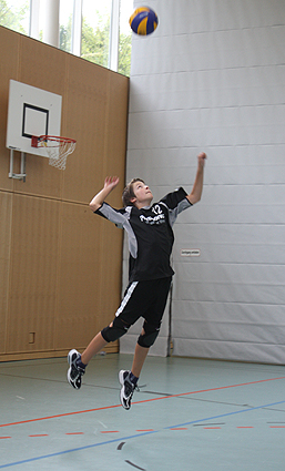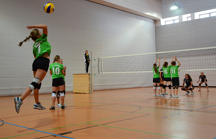 wird, in denen noch an der Feinabstimmung gearbeitet werden soll. Sonntag, 22.09.13 A-Juniorinnen starten mit zwei Siegen in die Saison, B-weiblich ohne Satzerfolg ![]() Angreiferin Sabrina Penner beim Sprungaufschlag im Spiel gegen Schrobenhausen