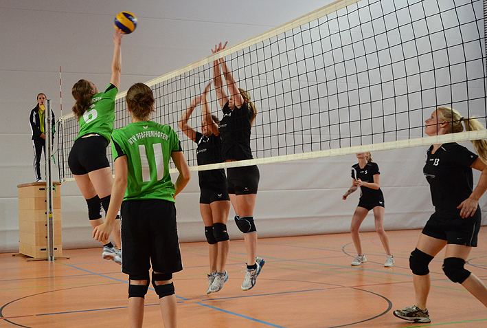 Mitte des Satzes ging mit der Aufschlagserie von Verena Penner ein Ruck durch die Mannschaft. Nun gleichauf im Niveau mit den Gegnerinnen, kämpften sich die Mädels Punkt für Punkt zurück – und trotzdem kam die Aufholjagd zu spät. Die beiden folgenden Sätze verliefen jedoch sehr erfolgreich für die MTV-Mädels – mit großem Kampfgeist und viel Motivation wurde jeder Ballwechsel stark umkämpft. Mit einer sehr guten Leistung setzten sich die Mädels 25:19 und 25:16 durch. Im vierten Satz nun zu siegessicher, verpassten die Pfaffenhofenerinnen den Satzanfang und kamen während des ganzen Satzes nicht ins Spiel – fehlende Absprachen und Chaos im Spielsystem waren daher Hauptthema in den Auszeiten bei 4:12 und 14:23. So entschied sich das Spiel im Tiebreak – hier plötzlich furios aufspielend und mit kämpferischen Abwehrleistungen ließen die MTVlerinnen ihren Gegnern kaum eine Chance. Dies spiegelte damit auch das eindeutige Ergebnis von 15:7 im Tiebreak wider. Insgesamt lässt sich eine deutliche Steigerung in den beiden Spielen