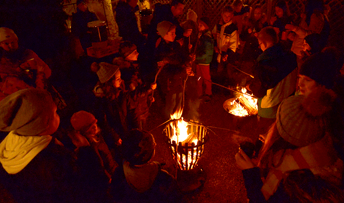 Stockbrot-Grillen im gemütlichen Biergarten aufwärmen. Der