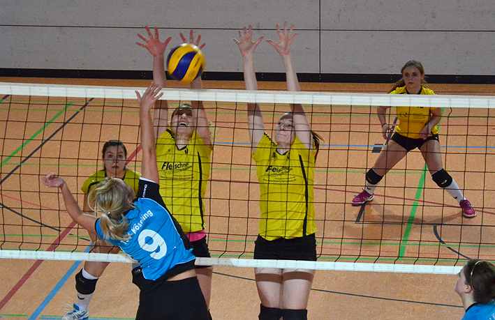 Lenting erreichten die Gastgeberinnen jeweils einen 3:1-Erfolg. Mit der SG traf man in der ersten Partie des Tages auf so etwas wie einen Angstgegner. Obwohl seit Langem auf sehr ähnlichem spielerischen Niveau und häufig Tabellennachbar, gelang dem MTV seit einigen Jahren kein Sieg mehr gegen Kösching. Und zunächst gab es auch keinen Anlass zu der Annahme, dass sich das ausgerechnet dieses Mal ändern sollte: Nach wenigen gespielten Ballwechseln reichte der SG eine Serie von guten Aufschlägen, um 11 Punkte am Stück zu machen und auf 14:4 davon zu ziehen. Beinahe hilflos in der Annahme und ohne jedes Selbstbewusstsein bei den seltenen Angriffen gab das MTV-Team ein Bild des Jammers ab. Ohne auch nur annähernd das tatsächliche Leistungsvermögen abgerufen zu haben, gab man kurze Zeit später den ersten Durchgang mit 10:25 an die keineswegs überzeugenden, jedoch selbstsicher agierenden Gäste ab. Einen –zum Glück- fast spiegelbildlichen Verlauf nahm dann der zweite Satz: Jetzt war es beim Stand von 1:3 MTV-Youngster Sabbi Penner, die mit einer Serien von 8 Sprungaufschlägen ihr Team mit 9:3 in Front brachte und diesem somit wieder Leben einhauchte. Nach und nach wurde dessen Spiel ruhiger, der Spielaufbau sicherer und somit die Angriffsaktionen häufiger und vor allem druckvoller. Spätestens nach dem Satzausgleich (25:18) hatte der MTV die Partie endgültig im Griff, denn während dieser jetzt ruhig und unaufgeregt sein Spiel abspulte, häuften sich bei der SG unter dem zunehmenden Druck der MTV-Offensive die Fehler, sodass dieser nach 2 weiteren, sicher gewonnenen Sätzen (25:18 und 25:16) mit 3:1 als verdienter Sieger vom Feld ging. Zweiter Gegner des Tages war kurze Zeit später der Aufsteiger und schon relativ abgeschlagene Tabellenletzte TSV Lenting. Auch hier leistete das Heimteam nach relativ sicher gewonnenem 1. Satz (25:21) einen kurzen Durchhänger: Im 2. Spielabschnitt war man plötzlich wieder vollkommen von der Rolle. Durch ungenaue Ballannahme litt zwangsläufig das Zuspiel und somit die Qualität der Angriffe, sodass die unbeschwert agierenden Lentingerinnen ohne große Mühe zum Satzausgleich kamen (16:25). Auch zu Beginn des 3. Satzes änderte sich zunächst nicht s Grundlegendes. Jetzt kämpfte der MTV angetrieben von Libera Katha Geretshauser zwar verbissen um jeden Ball, hatte jedoch in einigen Situationen schlicht Pech und musste den TSV auf 10:15 davonziehen lassen. Jetzt war es eine Serie starker Aufschläge von