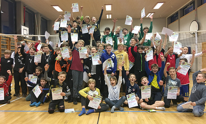 Geretshauser. In der Gruppenphase traf man auf Eichstätt, Neuburg II und Schrobenhausen. Für alle drei Spiele galt die gleiche Vorgabe: mit einer konzentrierten Leistung und platzierten Angriffen den jeweiligen Gegner unter Druck setzen und „ausschalten“. Gestaltete sich der Beginn der Sätze immer etwas zögerlich, so drehten die MTV-Mädels nach kurzer Zeit auf, setzten die Gegnerinnen mit starken Angaben und platzierten Angriffen zunehmend unter Druck und sicherten sich so am Ende alle Sätze und damit den ersten Gruppenplatz . Im Überkreuzspiel hieß der Gegner Freising, der sich in der anderen Gruppe Platz zwei gesichert hatte. Hier entwickelte sich ein spannendes und eng umkämpftes Spiel, in dem die Pfaffenhofenerinnen leider etwas zu viel Zeit benötigten, um die starke Mittelblockerin der Freisinger in den Griff zu bekommen. So wurde um jeden Punkt gekämpft, bis sich die Gastgeberinnen mit dem Publikum im Rücken im Endspurt der Sätze jeweils einen kleinen Vorsprung erarbeiten konnten, den sie dann knapp ins „Ziel“ retteten. Enttäuscht trat man im Spiel um Platz drei nochmals gegen Gruppengegner Eichstätt an. Während bei den MTV-lerinnen mittlerweile die Kraft und Konzentration etwas nachließ, ging Eichstätt hochmotiviert in die Partie, sodass sich das Spiel lange ausgeglichen gestaltete. Erst in der Endphase übernahm Außenangreiferin Sarah Halbedl das Zepter und sicherte mit jeweils einer starken Angabenserie den Sieg für Pfaffenhofen.![]() U16-männlich: (sp) Dieses Wochenende ging es für die männliche U16-Jugend zum „Highlight der Saison“, der Oberbayrischen Meisterschaft nach Obermenzing. Am Samstag spielten die Jungs in 3er-Gruppen jeder gegen jeden auf zwei Gewinnsätze. Mit den Teams SF Harteck und TUS Holzkirchen hatte man zwei Mannschaften in der Gruppe, die in den Punktspielrunden der Kreise München und Süd jeweils den ersten Platz belegt hatten. Zuerst traf Pfaffenhofen auf Harteck. Von Anfang an merkte man den Pfaffenhofenern an, dass sie weder die Aufschläge, noch die Angriffe der Gegner in den Griff bekommen. Durch zu viel Aufregung und Selbstzweifel schafften sie es nicht, eigene Punkte zu erzielen. Erst im zweiten Satz traute sich die Mannschaft schon deutlich mehr zu. Dennoch verlor sie beide Sätze klar 8:25 und 9:25. Auch gegen den starken Gegner und späteren Turniersieger Holzkirchen machten die Jungs zu viele Eigenfehler, sodass auch dieses Spiel recht schnell mit 0:2 verloren ging. Beim folgenden Überkreuzspiel traf man auf den Gruppen-Zweiten TSV Vaterstetten. Hier konnten die MTVler um Einiges mehr mithalten. Dennoch fehlte die nötige technische Sicherheit und das Selbstvertrauen, um die guten Leistungen dauerhaft abrufen zu können und sich gegenüber dem TSV durchzusetzen. Am Sonntag ging es nun um die Platzierungsspiele 9. – 12. Gegen die beiden Mannschaften Bad Endorf und Isar-Loisach machte hauptsächlich die Spielerfahrung den entscheidenden Unterschied. Sie waren den Pfaffenhofenern zwar nicht technisch überlegen, allerdings sehr wohl hinsichtlich des sicheren Zusammenspiels. Erst gegen den Gastgeber Obermenzing konnte sich die Mannschaft beweisen und konnte das Spiel mit 2:1 gewinnen. Es spielten: Jonathan Schneider, Maxim Bogacev, Artjom Ljulin, Emil Hofbauer, Florian Maier, Florian Berger, Simon Satzger, Quirin Bauer und Thomas Vukelic U13-männlich: (ul) Rund 35 überregionale Jugendmeisterschaften durfte Trainer Uwe Lessel als Betreuer bisher begleiten, die Oberbayrische Meisterschaft seiner U13-Jungs an diesem Wochenende in Lohhof (Samstag) und Grafing (Sonntag) gehört aber mit Sicherheit zu den bemerkenswertesten bisher überhaupt. Denn zum einen durften er und Co-Betreuer Konrad Hörskens erstmals überhaupt mit zwei Mannschaften zu einer Bezirksmeisterschaft anreisen, zum anderen aber wurde er von seiner 1.Mannschaft mit einer derart herausragenden Leistung belohnt, dass er wohl selten "so stolz auf sie" war, wie an diesem Wochenende. Der Grund für das eigentlich Bemerkenswerte war die Tatsache, dass nach dem ersten Vorrunden-Spiel gegen den "Angstgegner" Lohhof (im letzten Jahr hatte man bei allen drei großen Meisterschaftsturnieren klar den Kürzeren gezogen), bei dem sich bereits andeutete, dass man einen großen Leistungschritt gemacht hatte (den 2.Satz verlor man unglücklich mit 25:27), Leistungsträger und Stammspieler Marvin Betzler aufgrund plötzlich aufkommender starker Kopfschmerzen und Unwohlseins von seinen Eltern abgeholt werden und die Mannschaft ab diesem Zeitpunkt zu dritt und damit ohne Ersatzspieler weiterspielen musste. Zudem befand sich Titus Possenriede nach einem Fingerbruch und einer 2-monatigen Zwangspause erst seit Kurzem wieder im Mannschaftstraining, und so war das weitere Abschneiden nun als völlig unvorhersehbar einzuschätzen. Was die Mannschaft aber im Anschluss über die gesamte Dauer des Turniers nun leistete, darf man ohne Zweifel als herausragend bezeichnen. Zunächst setzte man sich in der Vorrunde nicht nur gegen den TS Jahn München klar durch, auch gegen den ASV Dachau, immerhin Vierter der letztjährigen Bayrischen U12-Meisterschaft, schaffte das verbliebene Rumpf-Trio den ersten Paukenschlag. Mit 25:16 und 25:14 wurde der eigentliche Favorit abgefertigt, und erstmals präsentierten die MTVler eine Lauf- und Abwehrbereitschaft, die Trainer Lessel nie zuvor gesehen hatte und die zudem ausschlaggebend für das letztendlich erfolgreiche Abschneiden war. Denn im anschließenden, entscheidenden Überkreuzspiel gegen die 2.Mannschaft des TSV Mühldorf hatte man nun die Spielsicherheit und auch das Selbstvertrauen, auch ohne Ersatzspieler ehrgeizig in jedes Spiel zu gehen und sich bis zum Ende völlig zu verausgaben. Der 2:0-Sieg über Mühldorf bedeutete dann auch bereits am Ende des ersten Turnier-Tages die durchaus unerwartete, erneute Qualifikation zur Südbayrischen Meisterschaft Anfang März. War bereits der erste, mit vier Spielen schon sehr anstrengende Tag 