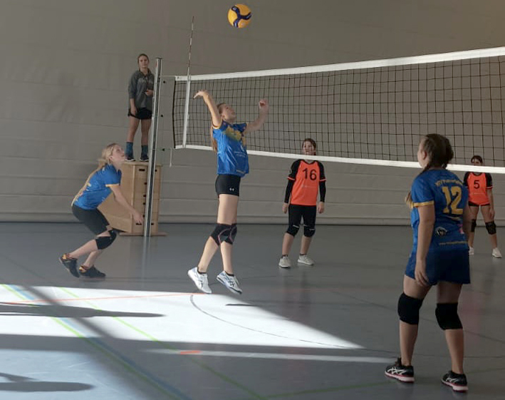 Im zweiten Spiel kämpften Isabella, Antonia und Lina tapfer um jeden Punkt, konnten jedoch keinen der beiden Sätze für sich entscheiden. Die drei Volleyball-Neuanfänger haben sich in dieser Saison schon stark gesteigert und werden ihren nächsten zwei bis drei Jahren in der U12 sicher noch das ein oder andere Spiel für sich entscheiden.