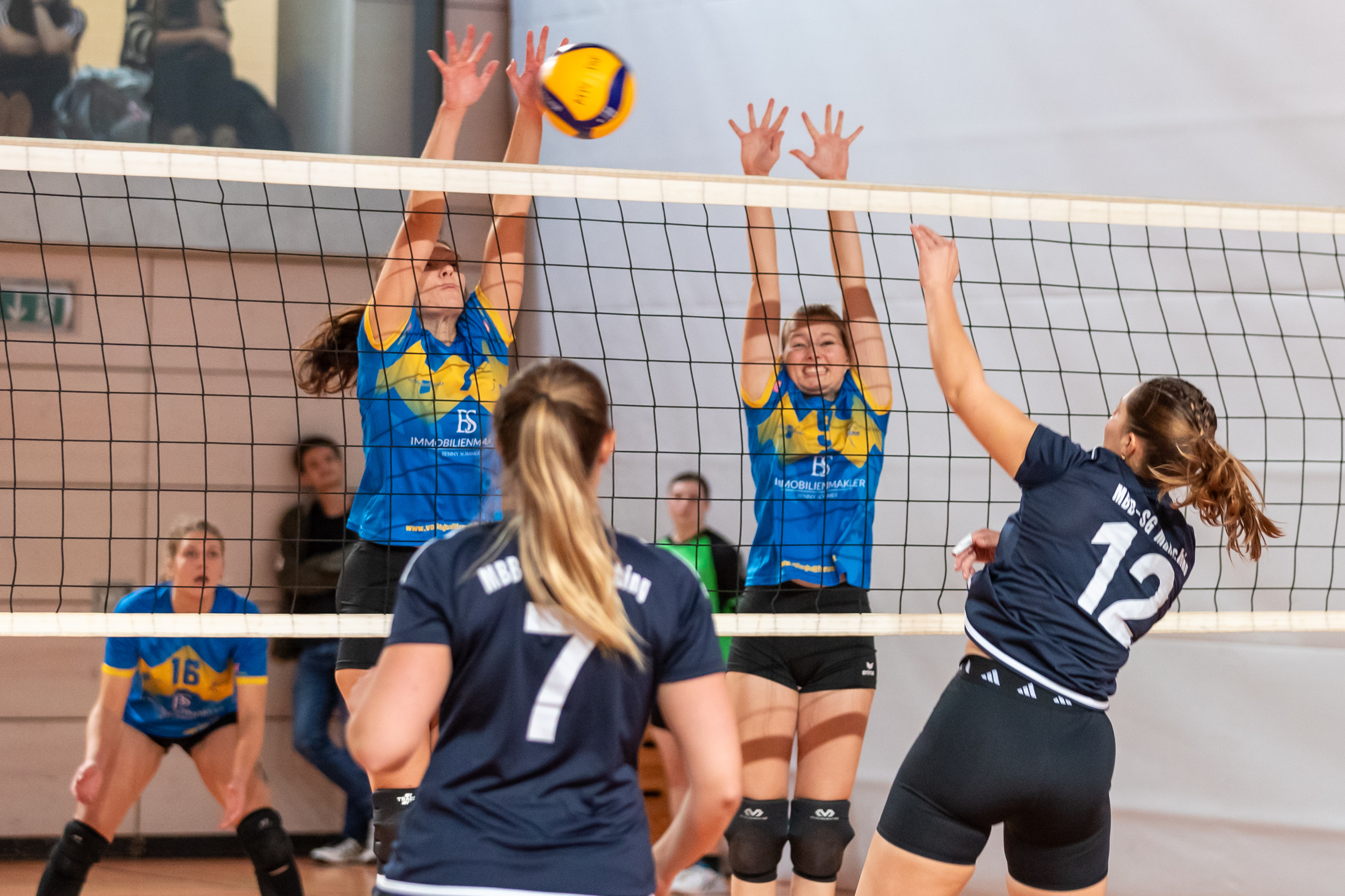 Im Spiel gegen den TSV Erding zeigten sich die Damen von ihrer besseren Seite. Da jedoch die Erdinger eine sehr gute Block- und Abwehrarbeit an den Tag legten, mussten alle Punkte mühsam erkämpft werden und erst im zweiten Satz gelang dem MTV nach einem 21:21 ein Satzgewinn. Von diesem Ergebnis beflügelt starteten die Pfaffenhofener Damen sehr stark in den dritten Satz und sicherten sich einen großzügigen Vorsprung, welcher sie nach einer leicht schwächelnden Endphase ins Ziel rettete. Nun spielten die Damen 1 noch einmal richtig auf: Die weiterhin sehr gute Annahme ermöglichte konsequenten Druck am Netz, sodass der Kampfgeist des gegnerischen Teams sehr früh gebrochen war. Ohne eine weitere Schwächephase sicherte man sich weitere 3 Punkte (20:25, 25:22, 25:18, 25:11).