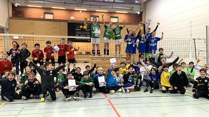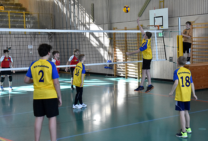 U12-weiblich: (mp) Der Heimspieltag der MTV Volleyball F-Jugend am Sonntag fand in historischer Größe statt. Im Schyren-Gymnasium spielten 12 Mädels und 4 Jungs-Mannschaften auf 5 Feldern.