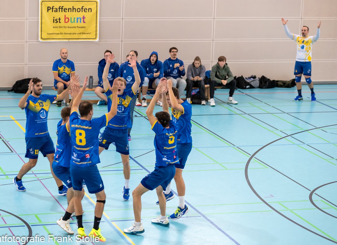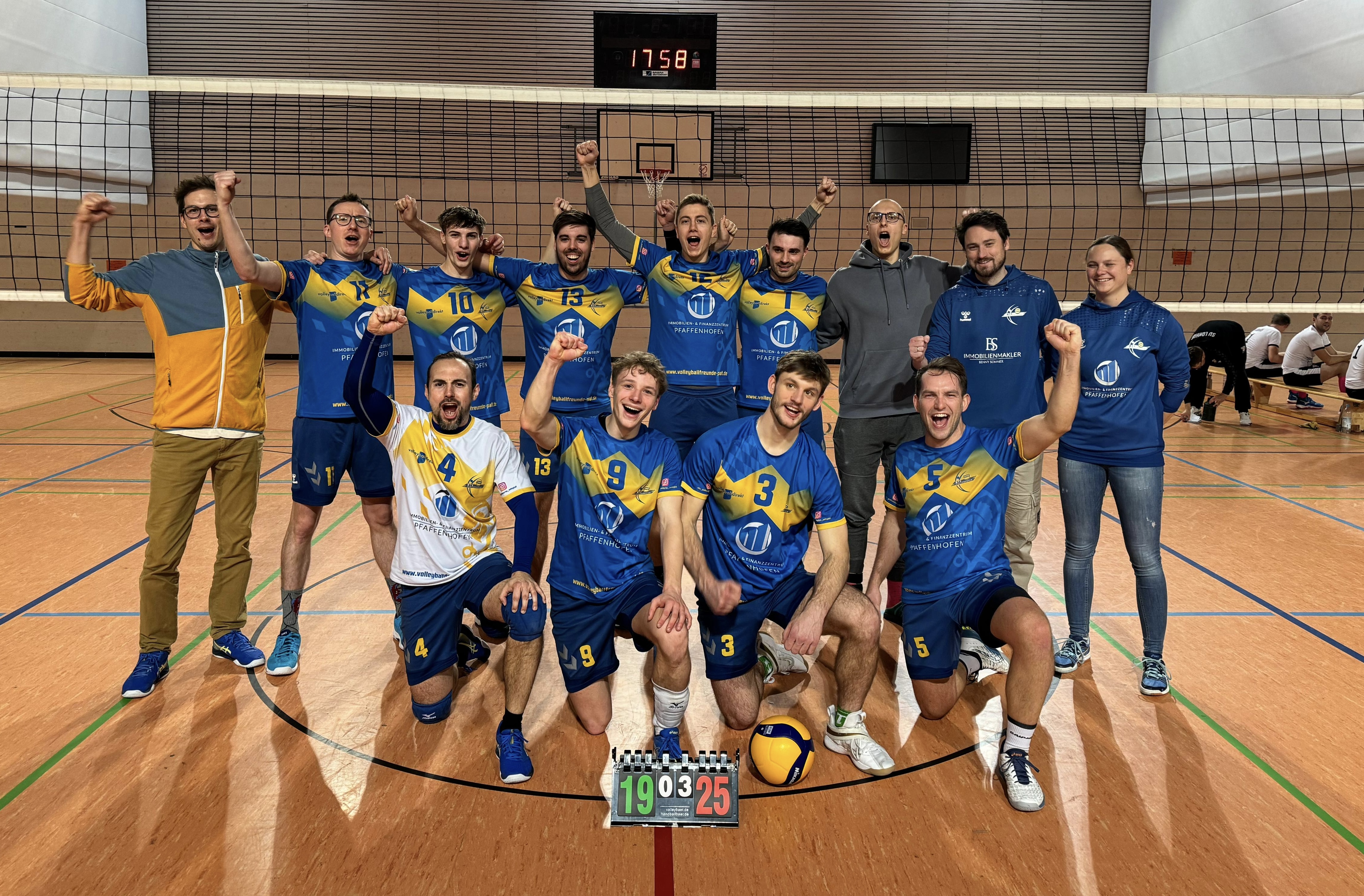 Im zweiten Spiel des Tages spielten die Jungs des MTV gegen den - in der Tabelle nur einen Platz höher stehenden - SV Eitensheim. Auch hier waren die Erwartungen der Pfaffenhofener hoch, da die Eitensheimer zuvor gegen Neuburg 3:1 verloren hatten, also ähnlich gut gespielt hatten wie unsere Mannschaft. Jedoch begann das Spiel aus Sicht der Pfaffenhofener eher schlecht. Nach vielen eigenen Fehlern und verschlagenen Angaben verlor man den ersten Satz trotz gutem Einsatz mit 19:25. Klar zu merken war die Erschöpfung aus dem ersten Spiel des Tages, die erheblich zu den eigenen Fehlern beitrug. In der Satzpause zum zweiten Satz schaffte es Trainer Philipp Langmaier dann aber doch, seine erschöpfte Mannschaft so gut zu motivieren, dass der darauf folgende zweite Satz wesentlich besser für den MTV verlief. Fast hätte man deshalb bereits im zweiten Satz die Eitensheimer geschlagen, jedoch schaffte man es auch hier nicht ganz, die finalen Punkte zu erzielen und das Spiel zu beenden, weswegen die Jungs diesen Satz 26:24 verloren. Dennoch merkte man bereits im zweiten Satz deutlich, dass die bislang erfolglosen Pfaffenhofener heiß auf die ersten Punkte waren, die so nah schienen wie noch nie zuvor. Im dritten Satz des Spiels, schafften die MTVler es nun endlich, über ihren eigenen Schatten zu springen und einen Satz mit 25:16 für sich zu entscheiden. Durch kluge strategische Wechsel konnte dieses Momentum dann auch in den vierten und fünften Satz mitgenommen werden und die, zu diesem Zeitpunkt sichbar frustrierten, Eitensheimer in beiden Sätzen geschlagen werden (25:21, 15:12). Damit holten die Jungs der 2. Herrenmannschaft des MTV Pfaffenhofen am letzten Spieltag des Jahres endlich ihre ersten beiden Punkte, und haben nun nur noch 3 Punkte Rückstand auf den SV Eitensheim.